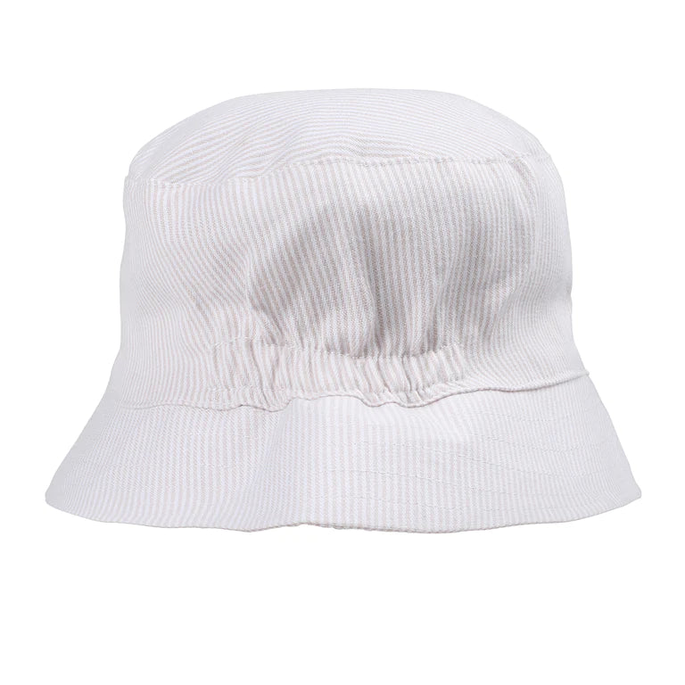 This lovely natural stripe cotton sunhat will protect your little one from the harsh rays of the sun. It features an elastic back and velcro chin strap making it easy to keep on. Australian owned and designed. Made in China.