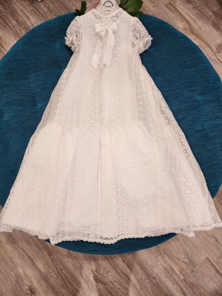 Stunning gown with matching bonnet, detachable lace coat.